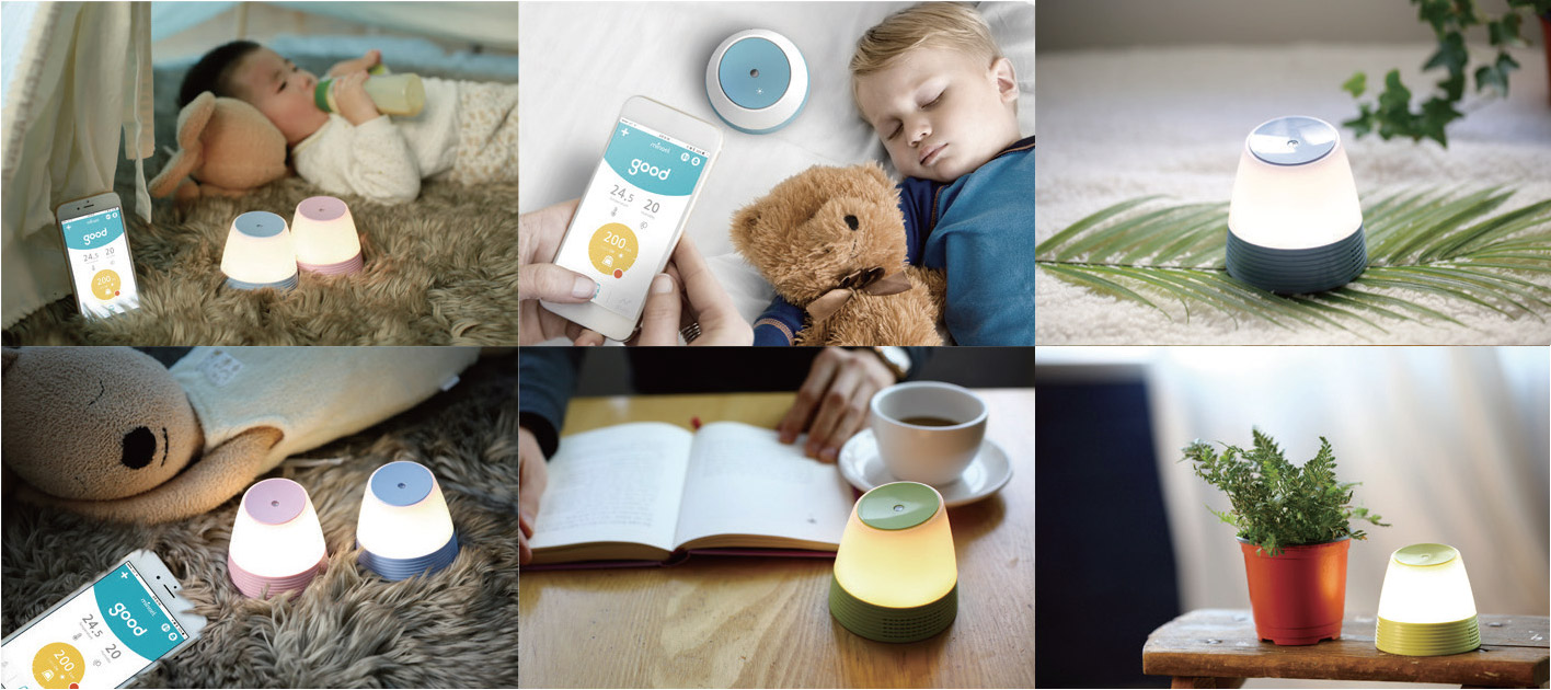 Minael has several useful functions. First, Minael connects to your smartphone via the Internet, so you can check temperature and humidity whenever you want. With its alarm service, your smartphone will receive a notification alarm when the room temperature and humidity get out of the range you already set up. You can monitor overall temperature and humidity information over daily, weekly and even monthly basis. With timer, light turns on and off automatically based on your set-up.