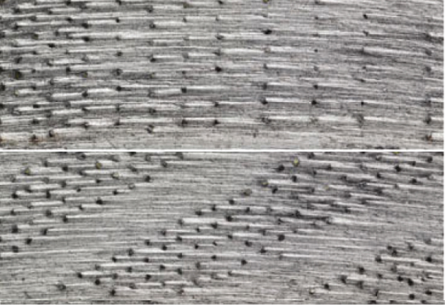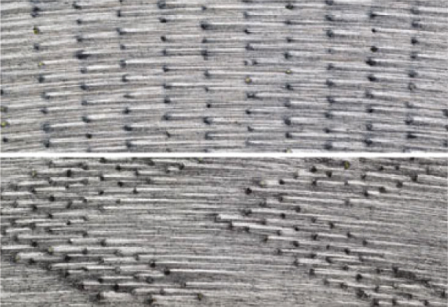 If the wheel keeps rotating with die separated, faults may occur due to the collision among chips and mixed dust. As kerf width is maintained between dies, chips are fixed during back grounding. It is easy to release with no residue.