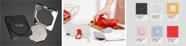For luxury, high-priced premium smartphones, Things Square Ring is especially manufactured with 3mm of thickness and unique design. It was launched after 0.4million tests and boasts superior durability. It thus can satisfy users who seek premium smart rings. This functions as a cradle, and facilitates safe grip when using one-hand. Users can freely use it in the angle and direction they wish with the functions of 180-degree folding and 360-degree rotation.