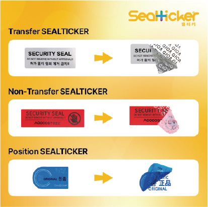 Once applied, SEALTICKER leaves a trace on the label or product to indicate whether it has been opened or tampered with. The lineup includes: Residual-type labels that leave a trace on both the product and label Non-residual types that leave a trace only on the label Position seal stickers with surface printing and hidden text at a 1:1 ratio, rather than patterned hidden text These technologies allow immediate detection of unauthorized opening while ensuring user-friendly application for manufacturers and consumers.
