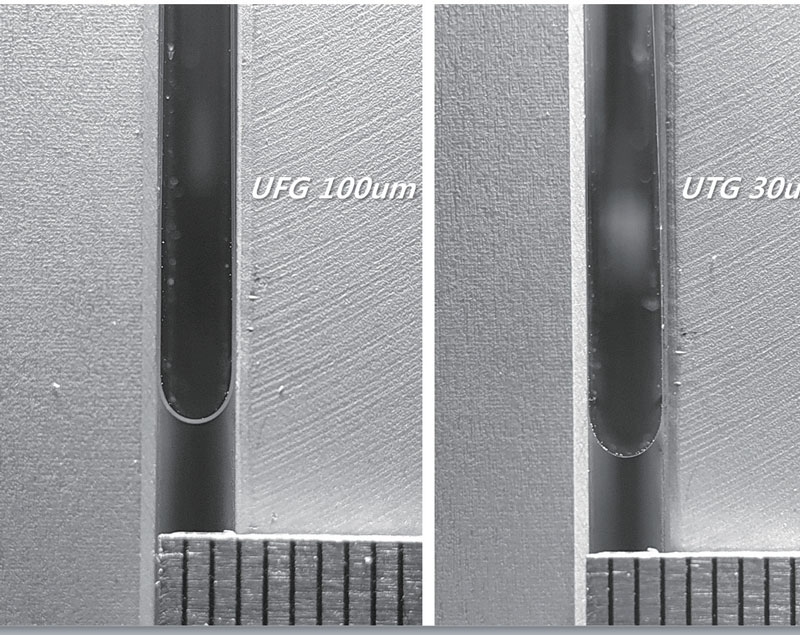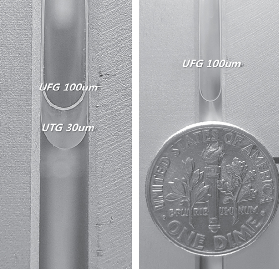 The thickness of the product could be 30um – 200um, which improves strength and safety in consumer handling. UTI has a number of related patents and keep publishing additional patents. UTI also guarantees the quality and reliability of the products based on its experience of mass production of tempered glass for many years.