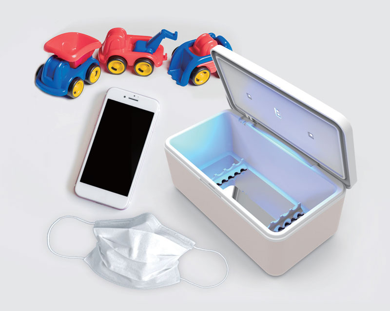 With three UV-C germicidal LED lamps grafted onto each of the legs, the sterilizer has enhanced germicidal power. Moreover, test results conducted by the nation’s offi cial test certifi cation organizations including Korea Testing & Research Institute (KTR) and Korea Conformity Laboratories (KCL) show that it is capable of 99.9-percent sterilization.