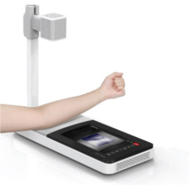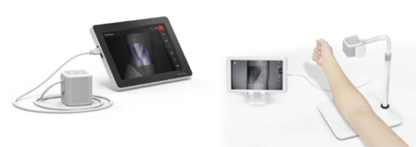 Vein Probe, a real-time vascular-imaging medical device, is a video medical device that shows blood vessels in real time. Unlike earlier products, it is a device that shows the location and shape of the blood vessels on the display without pretreatment to find, tie and tap the blood vessels. It can even detect the fine blood vessels under the skin, and can be used regardless of age, gender, or race.